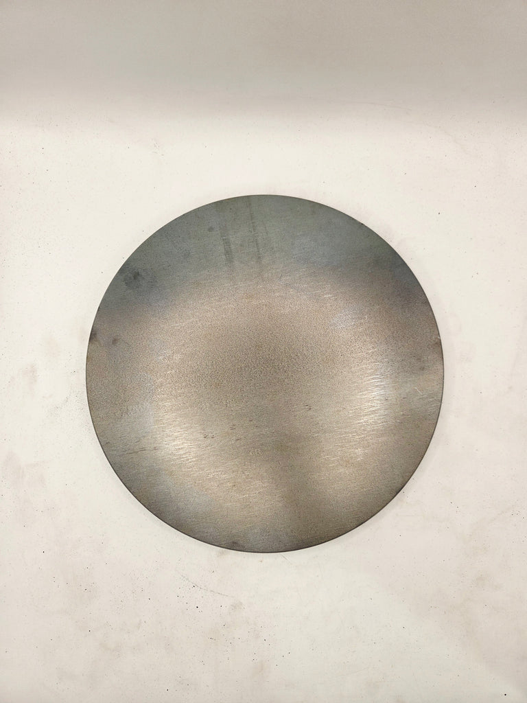 Caps measure 8-3/8" in diameter to allow for weld placement. Laser cut out of 10-gauge mild steel.